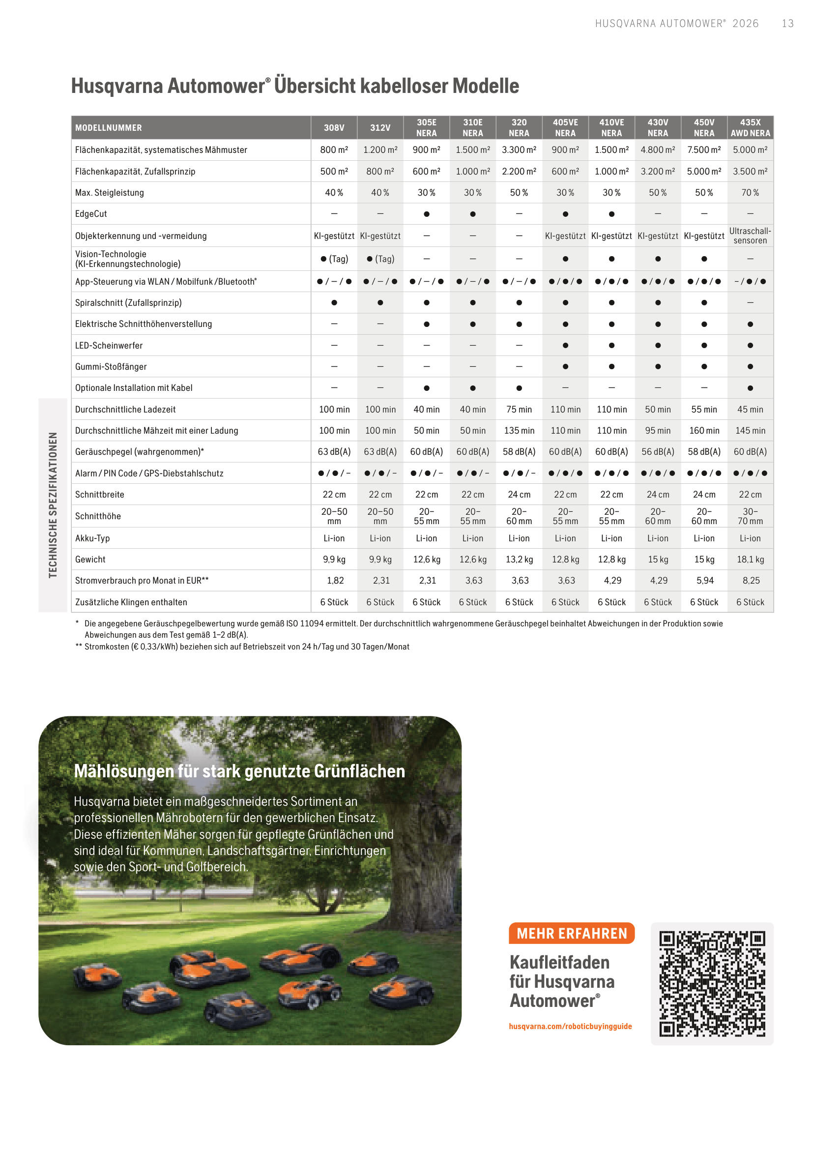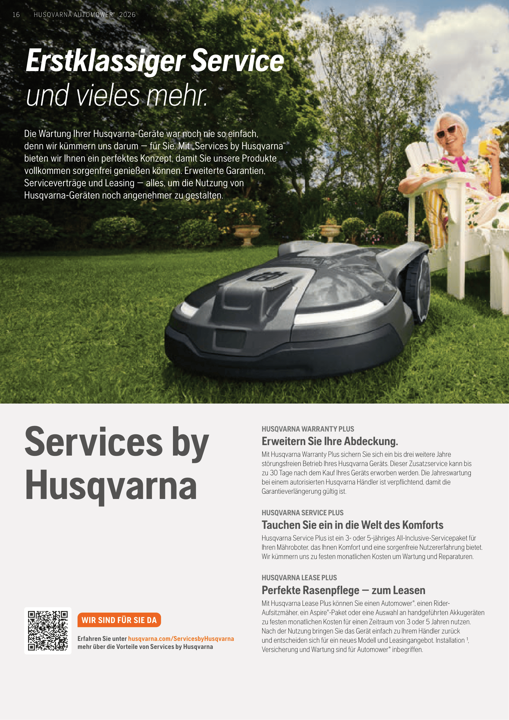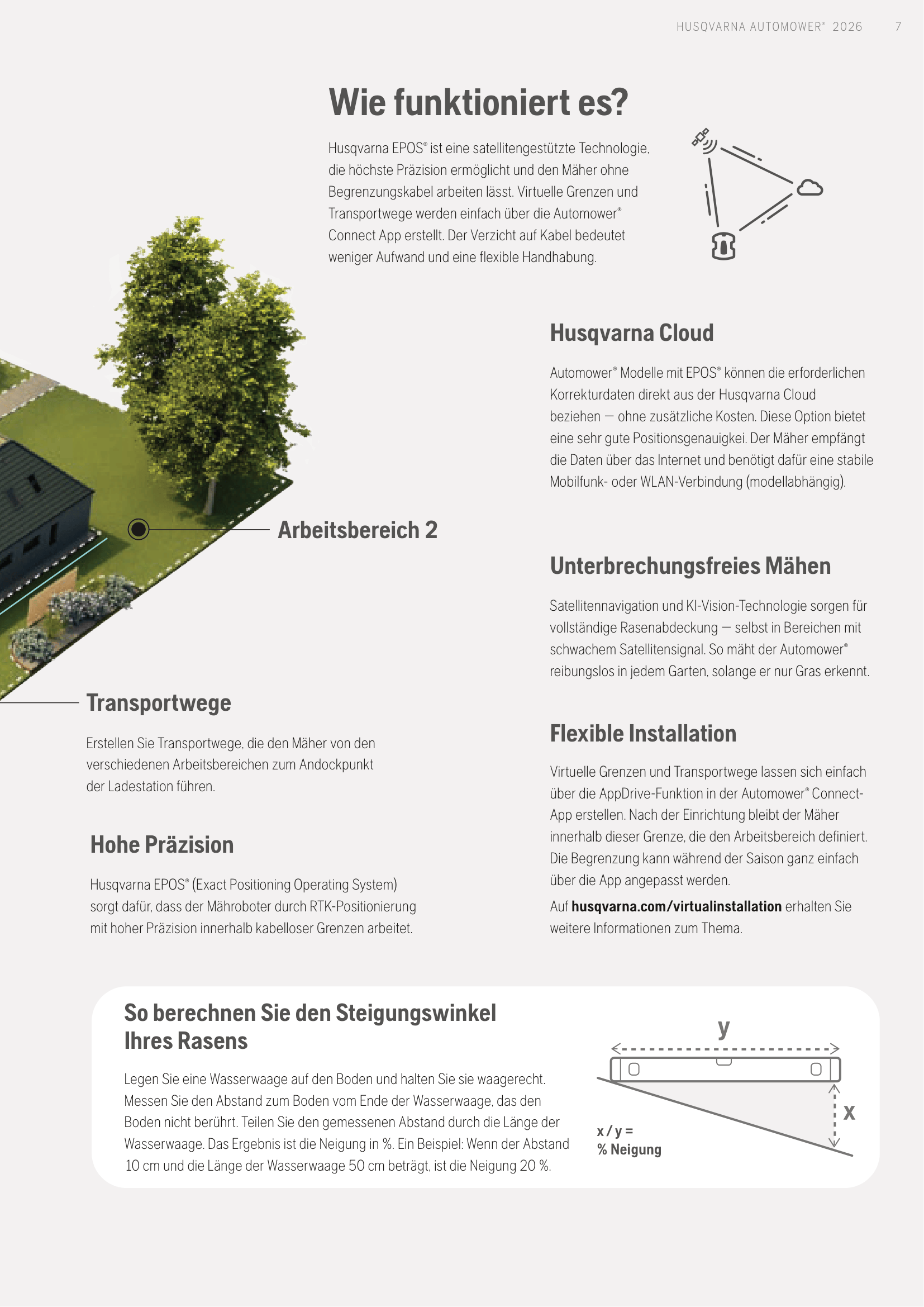 Weltweit gibt es bereits mehr als drei Millionen Hausbesitzer und Profis, die darauf vertrauen, dass die Mähroboter von Husqvarna ihren Rasen perfekt in Form halten. Diese sind mit den neuesten Technologien wie GPS-gestützter Navigation und integrierten Sensoren ausgestattet und gewährleisten so eine einfache und komfortable Bedienung. Während du deine Zeit mit angenehmeren Tätigkeiten verbringen, erledigt dein Husqvarna Mähroboter die schwere Arbeit leise, eigenständig und ausgesprochen effizient. Mit der Automower Connect-App kannst du deinen Mähroboter mit dem Smartphone verbinden und in dein Smart Home integrieren. Per Sprachsteuerung sorgst du mit nur einem Befehl dafür, dass dein Rasen stets gesund und gepflegt ist. Entdecke unser umfangreiches Produktangebot. Es gibt mit Sicherheit einen Husqvarna Mähroboter, der perfekt auf deinen Rasen und deine Bedürfnisse zugeschnitten ist.