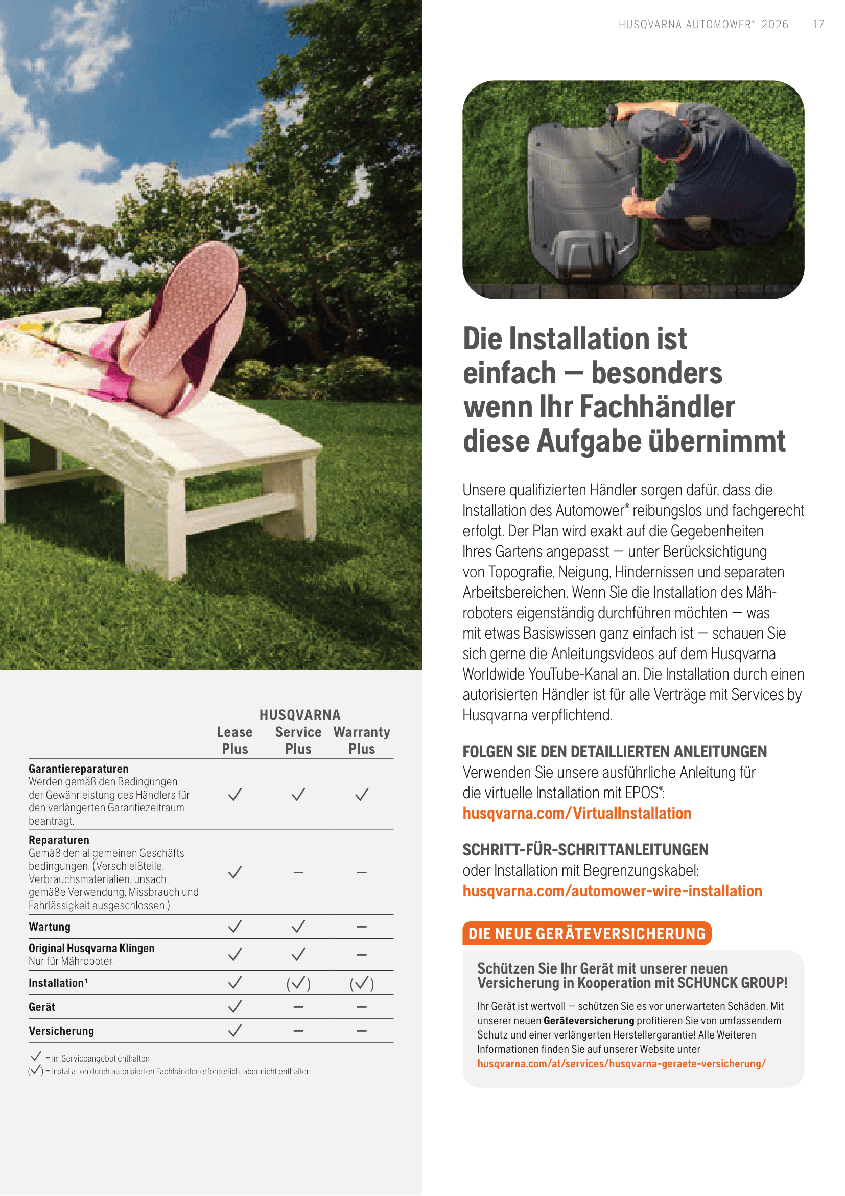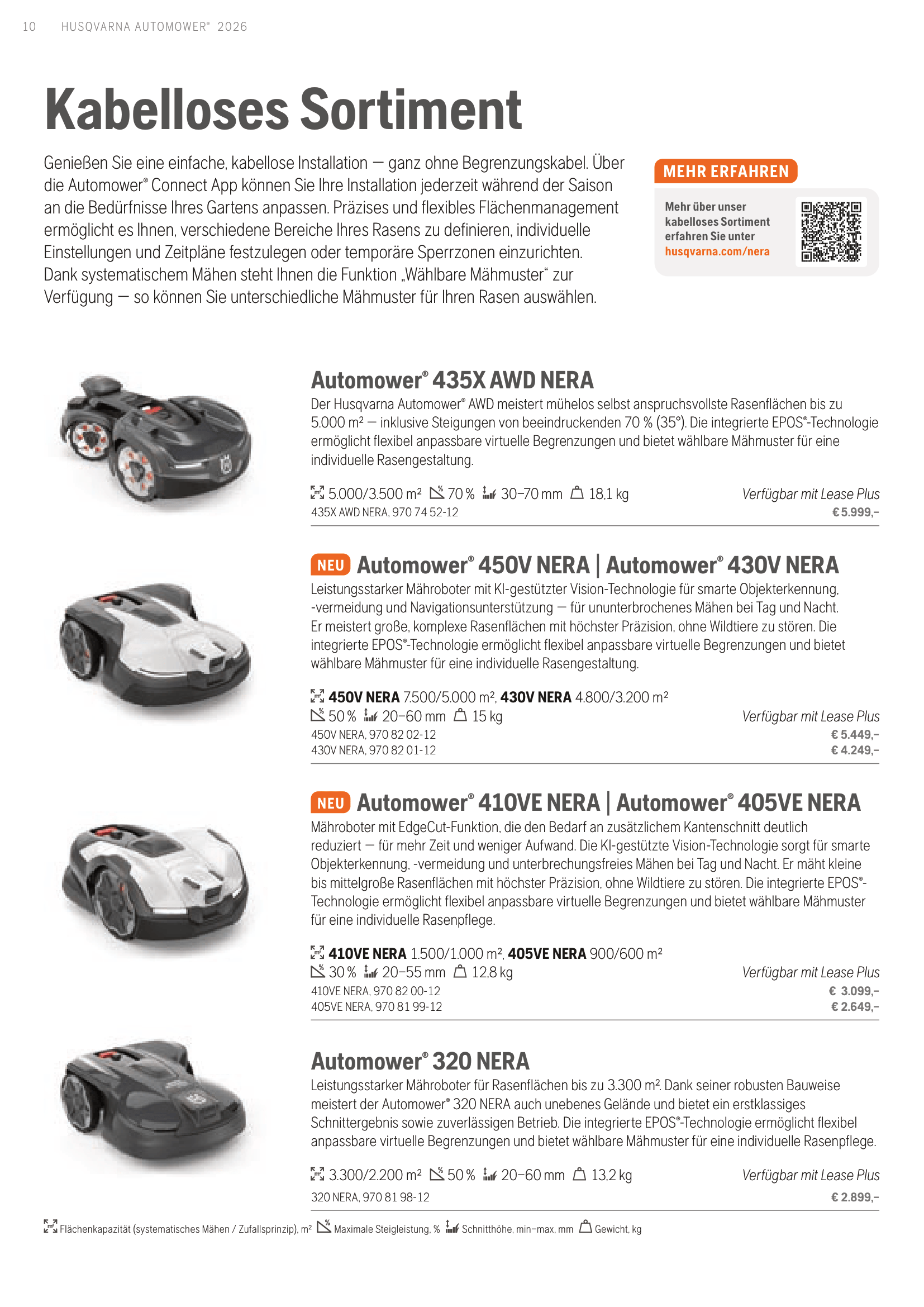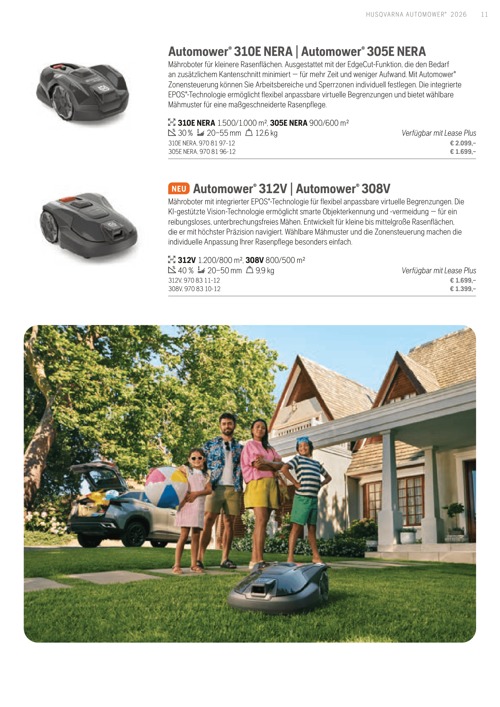 Weltweit gibt es bereits mehr als drei Millionen Hausbesitzer und Profis, die darauf vertrauen, dass die Mähroboter von Husqvarna ihren Rasen perfekt in Form halten. Diese sind mit den neuesten Technologien wie GPS-gestützter Navigation und integrierten Sensoren ausgestattet und gewährleisten so eine einfache und komfortable Bedienung. Während du deine Zeit mit angenehmeren Tätigkeiten verbringen, erledigt dein Husqvarna Mähroboter die schwere Arbeit leise, eigenständig und ausgesprochen effizient. Mit der Automower Connect-App kannst du deinen Mähroboter mit dem Smartphone verbinden und in dein Smart Home integrieren. Per Sprachsteuerung sorgst du mit nur einem Befehl dafür, dass dein Rasen stets gesund und gepflegt ist. Entdecke unser umfangreiches Produktangebot. Es gibt mit Sicherheit einen Husqvarna Mähroboter, der perfekt auf deinen Rasen und deine Bedürfnisse zugeschnitten ist.