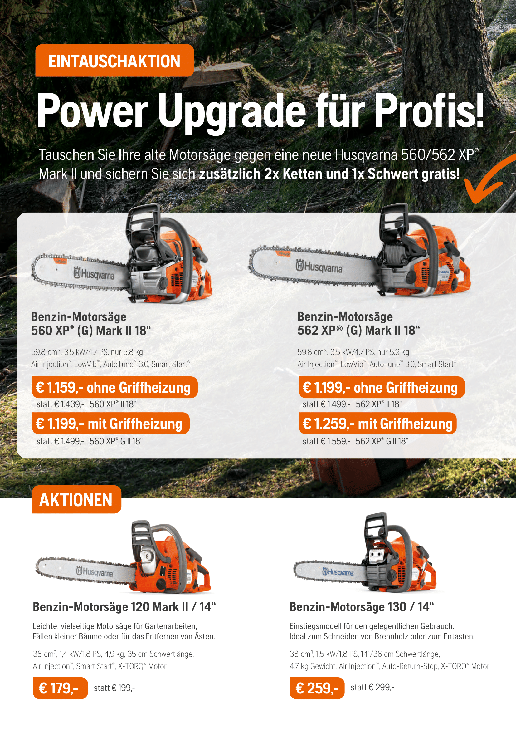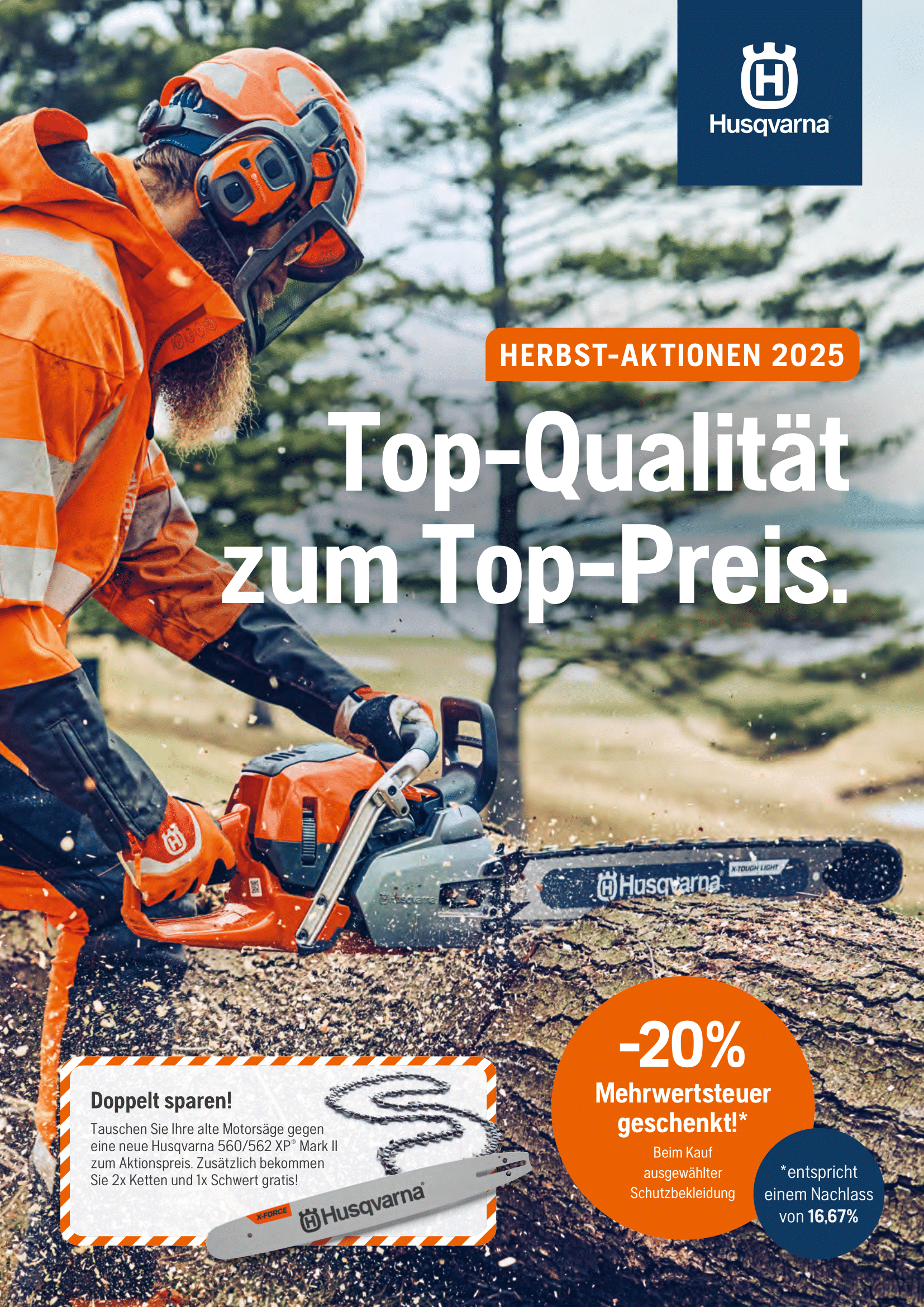 Der Herbst ist da – die ideale Zeit, deinen Garten und dein Grundstück fit für den Winter zu machen. Ob Laub entfernen, Hecken schneiden oder Brennholz vorbereiten – mit den leistungsstarken Motorgeräten von Husqvarna erledigst du alle anfallenden Arbeiten schnell und effizient. Nutze jetzt die attraktiven Herbstangebote und sichere dir hochwertige Geräte zu besonders günstigen Konditionen. So startest du bestens ausgerüstet in die goldene Jahreszeit!