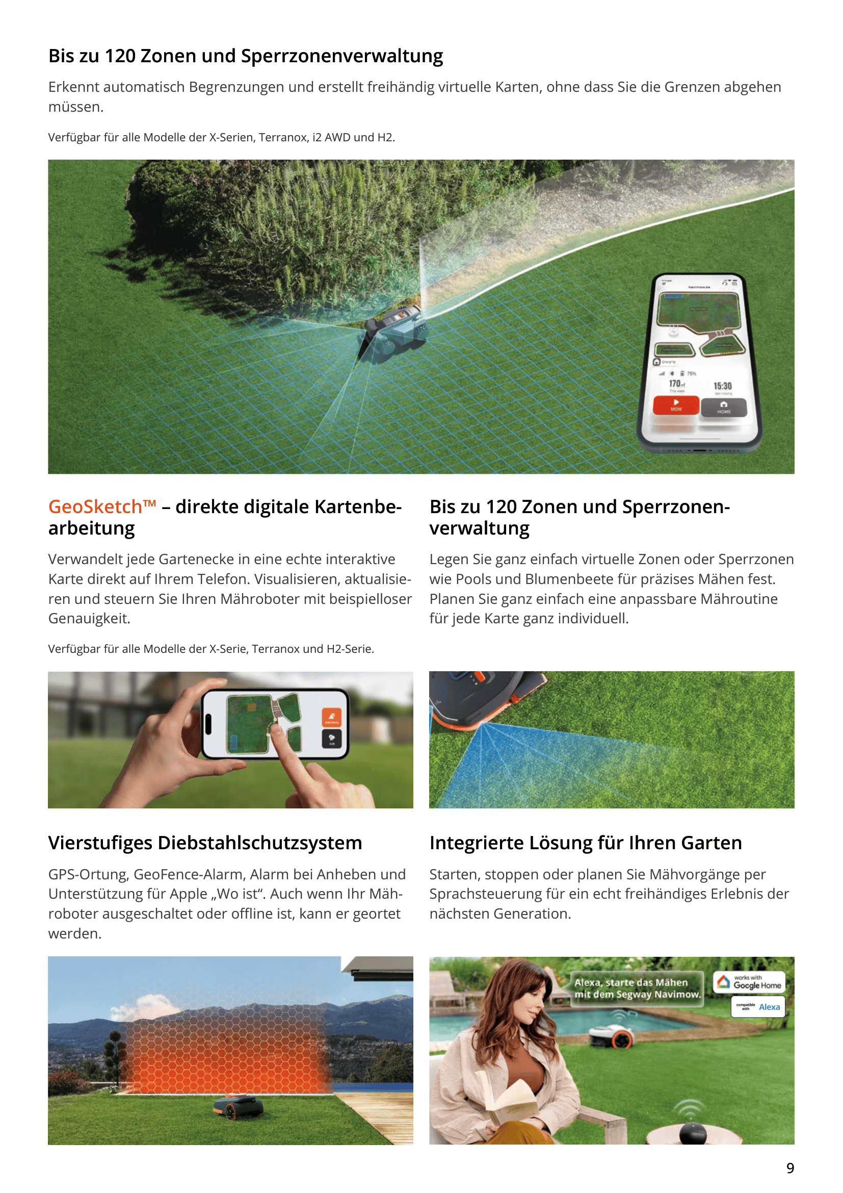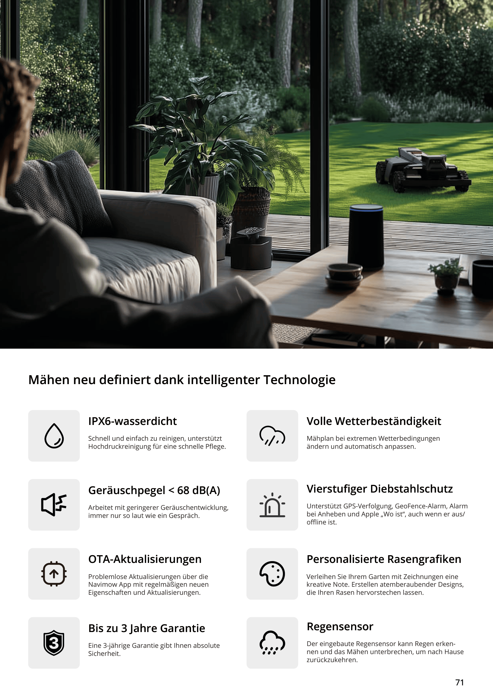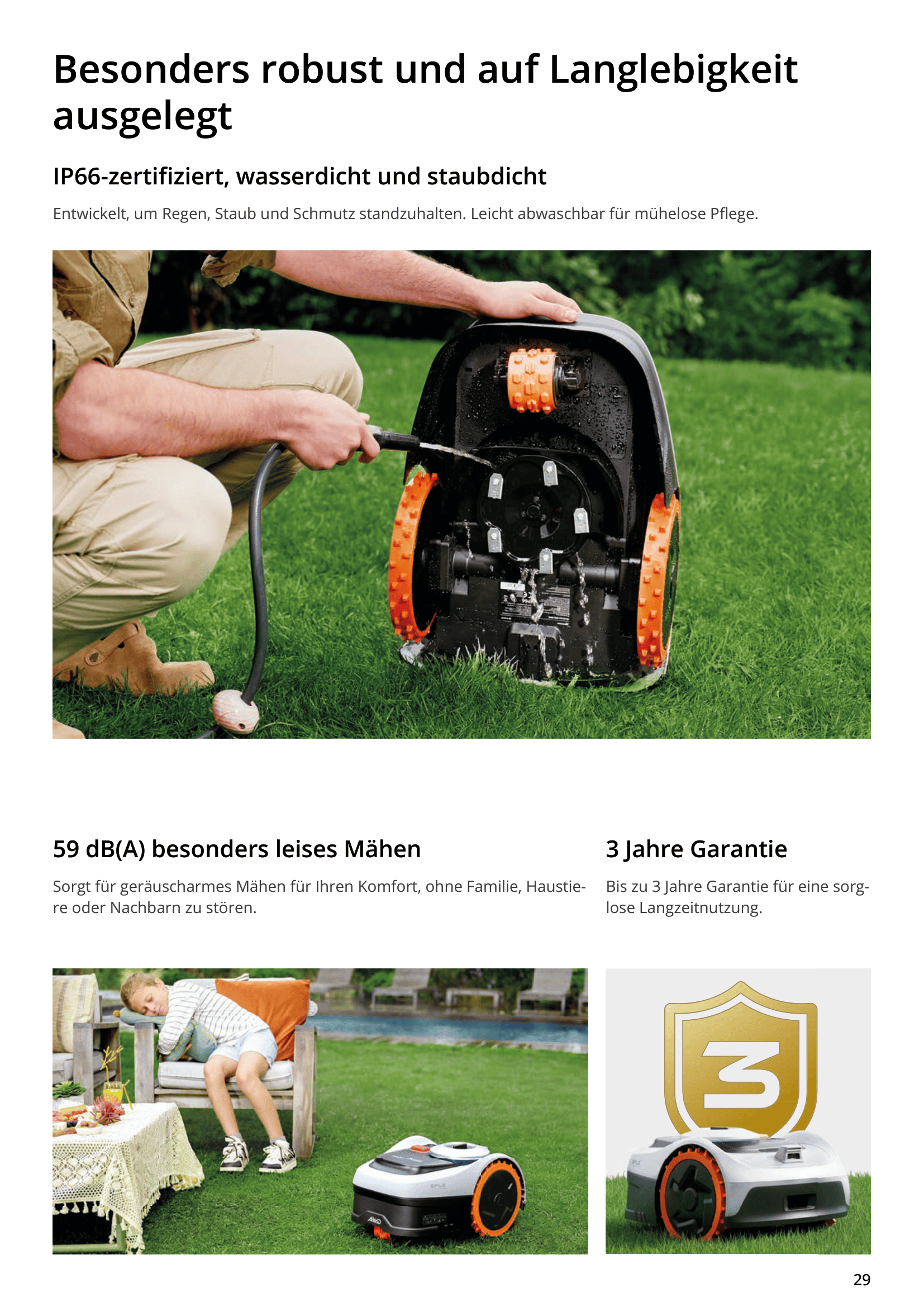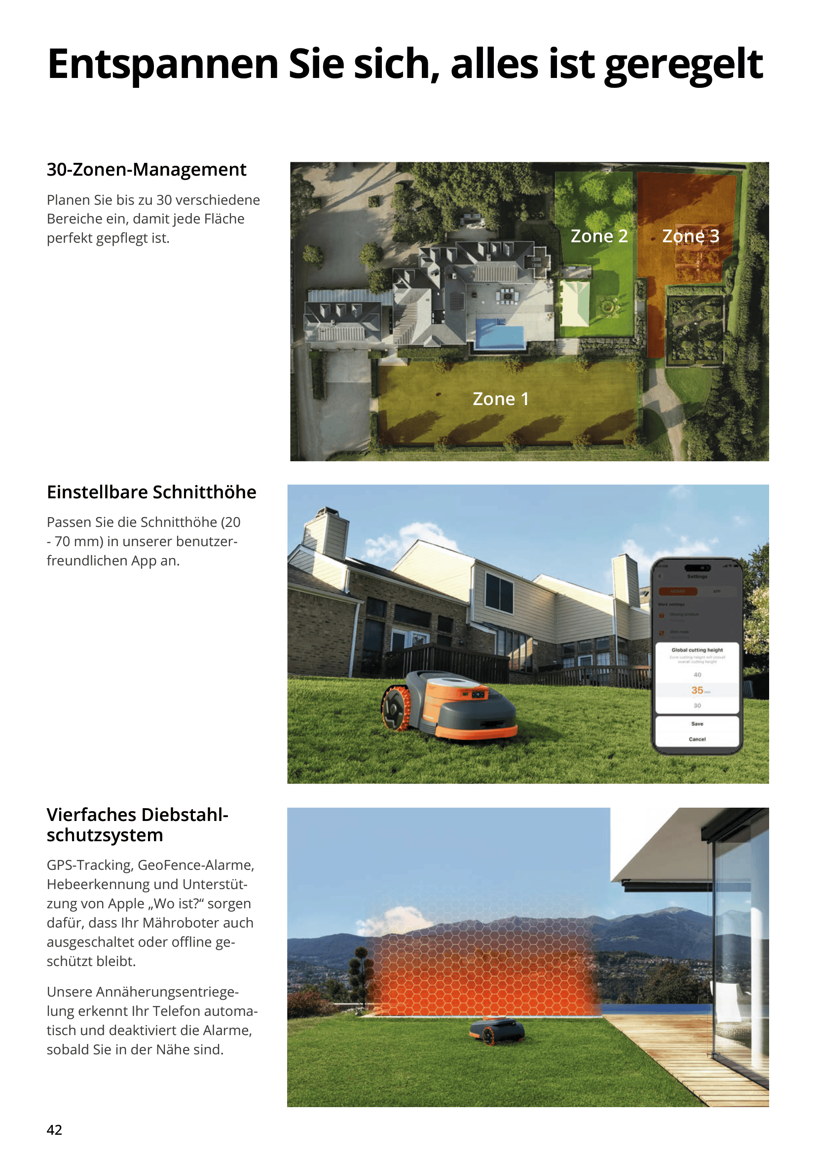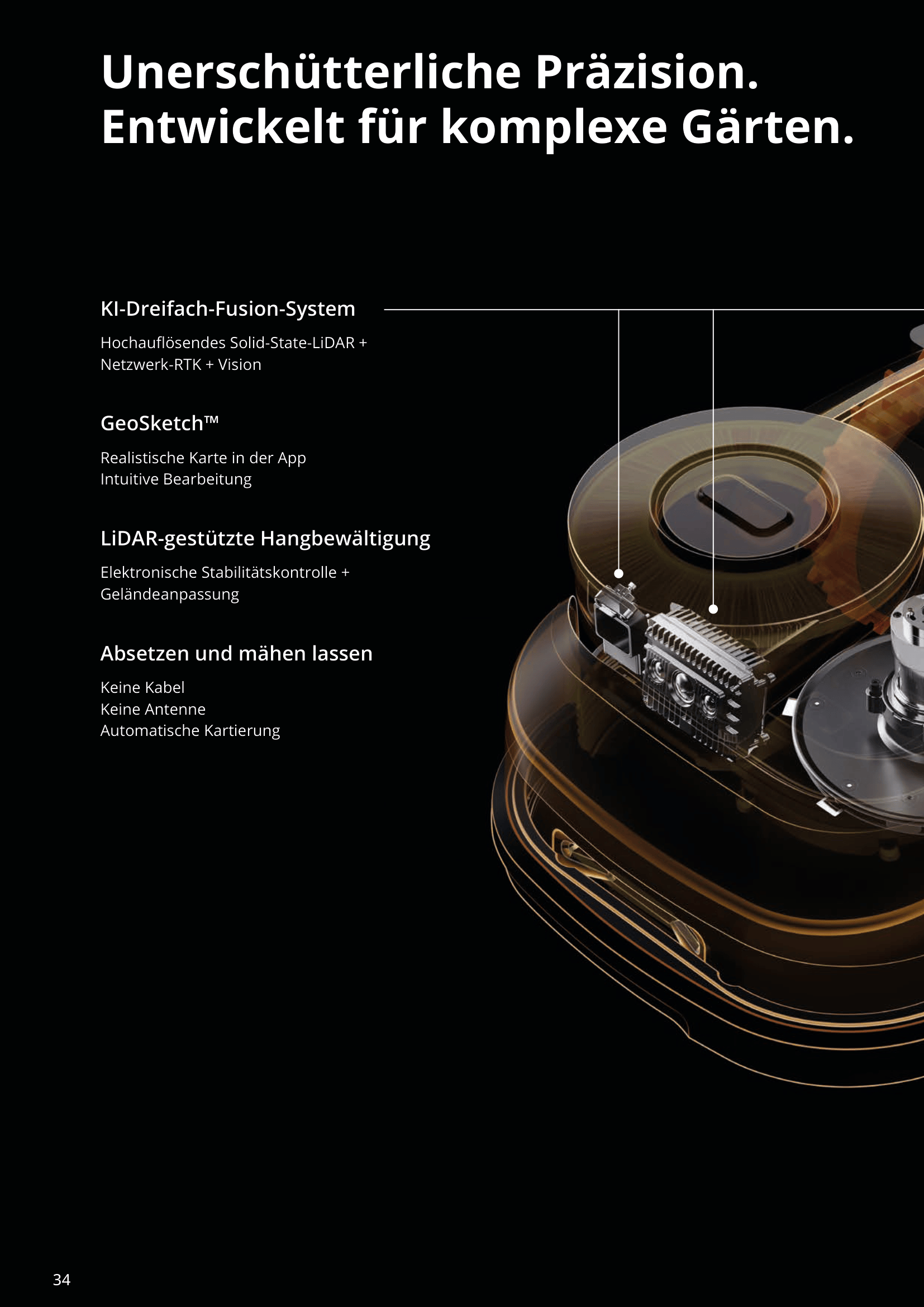 Konzipiert für kleinere Gärten. Ausgestattet mit 140°-Weitwinkelkamera, KI-Algorithmus und VisionFence™.
