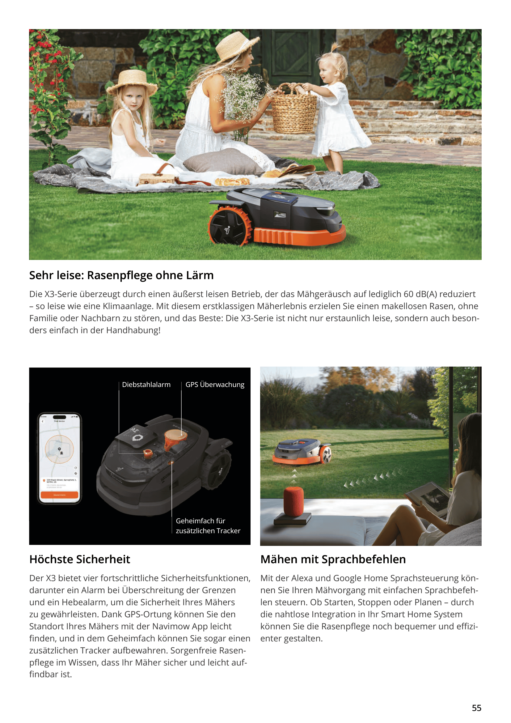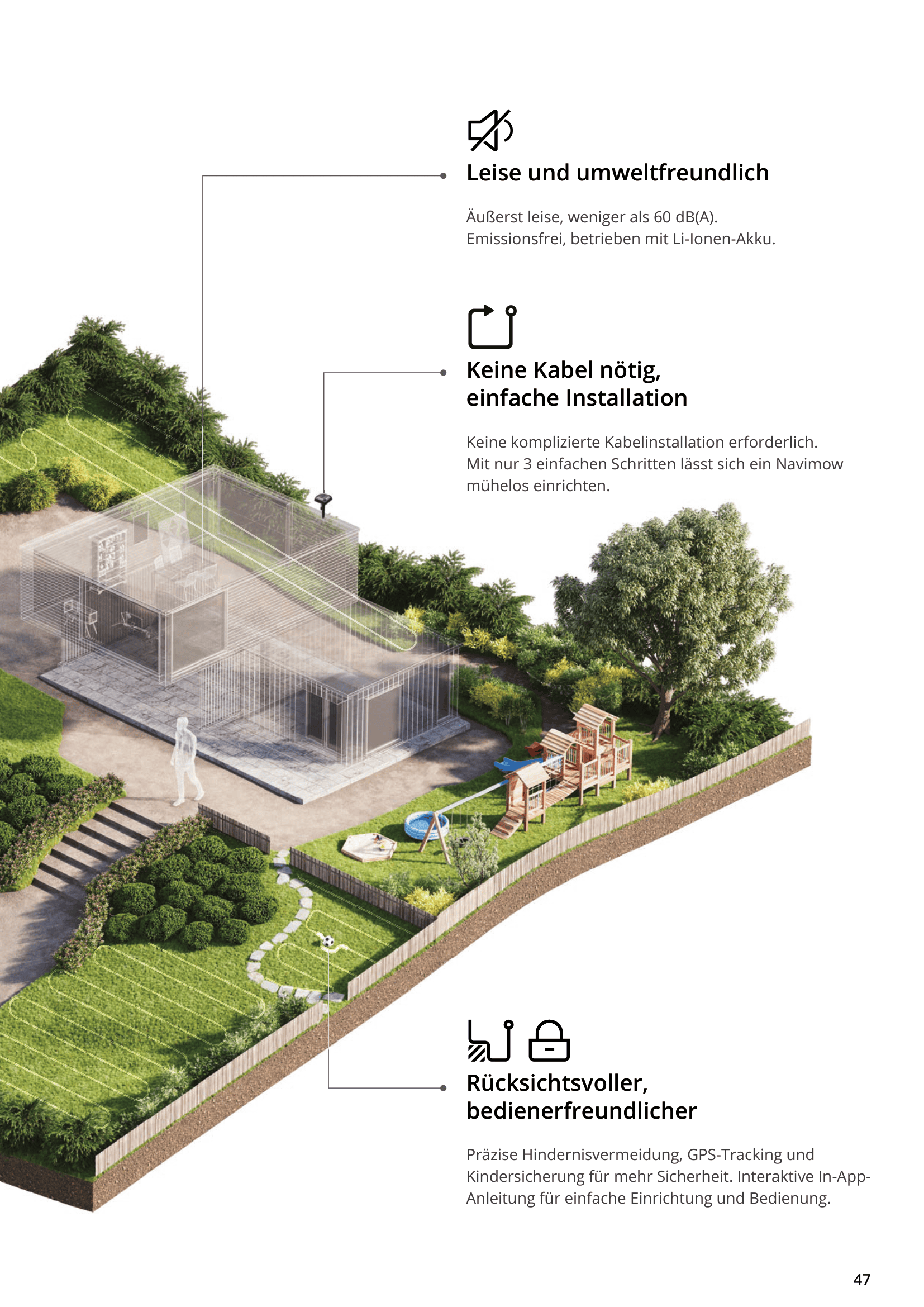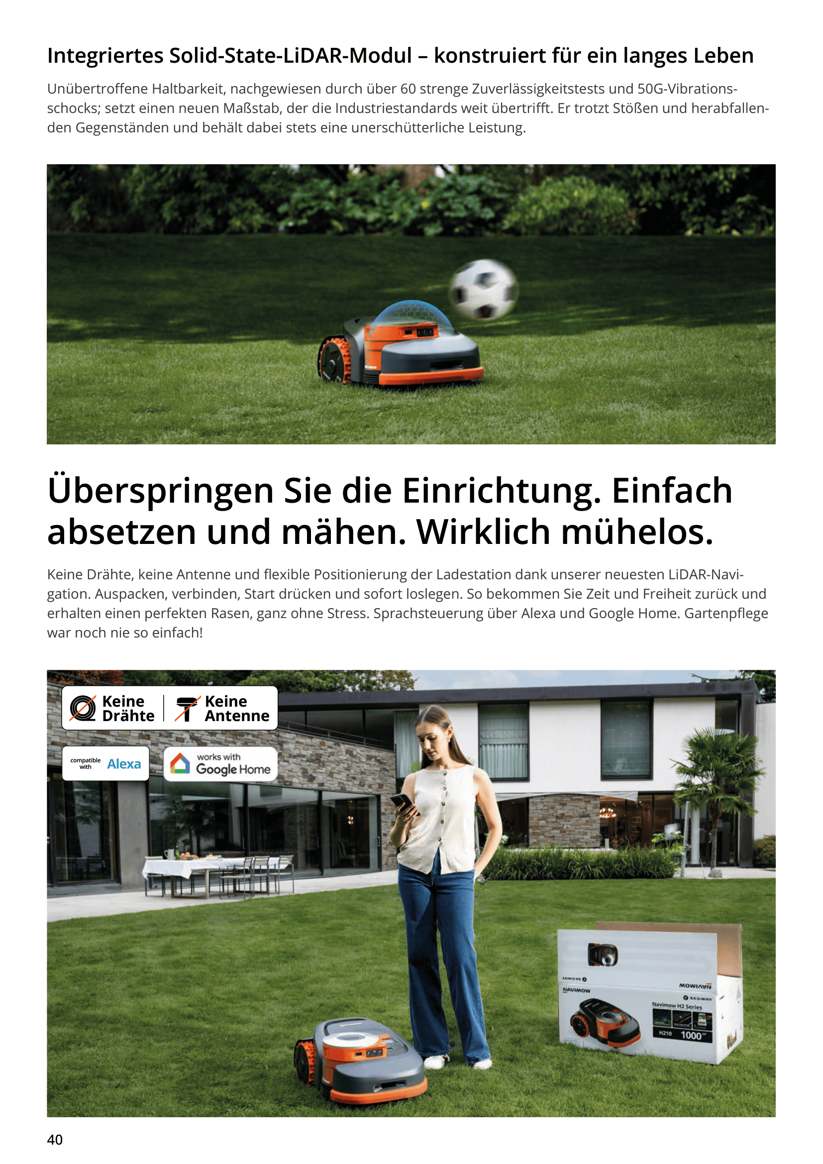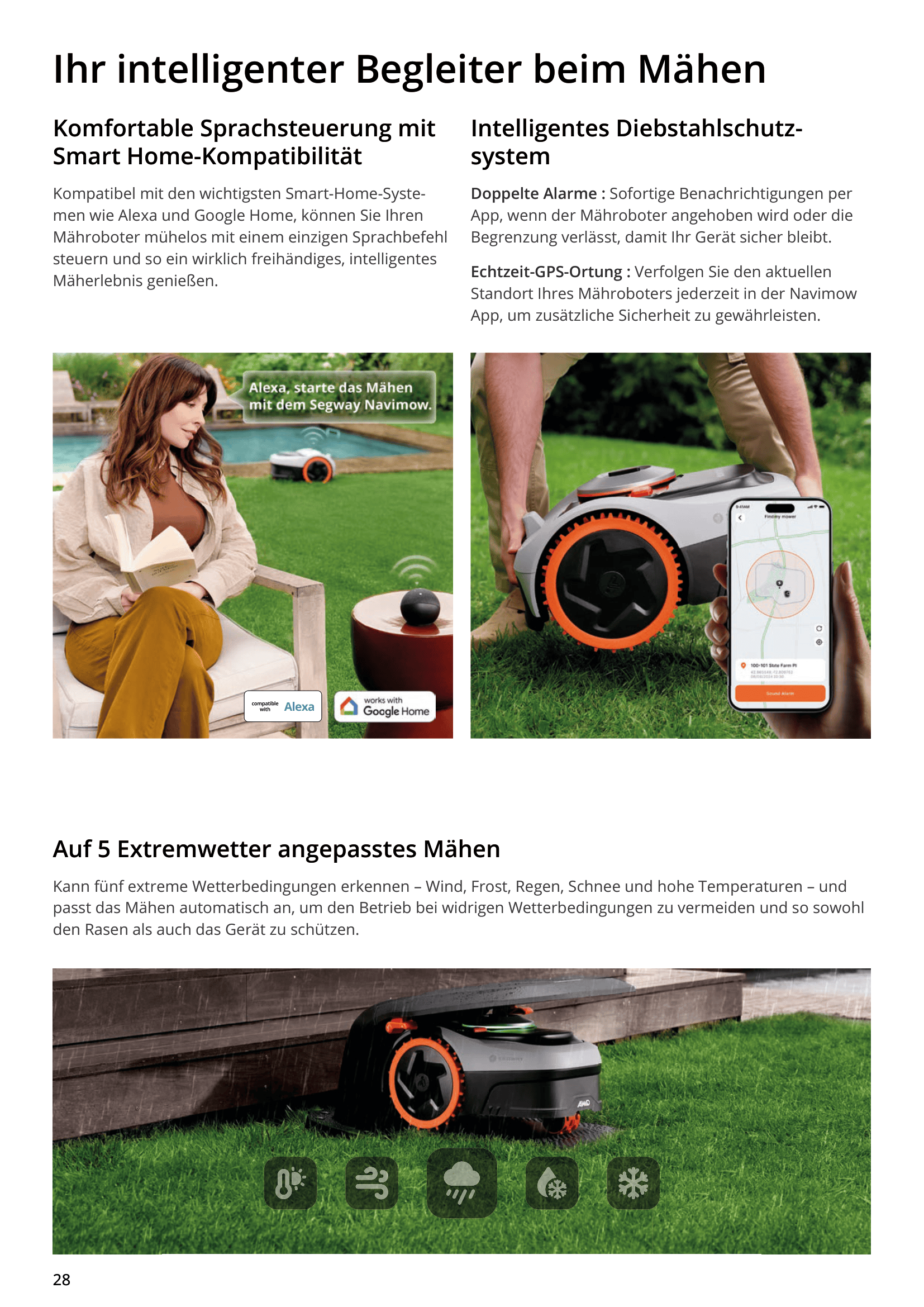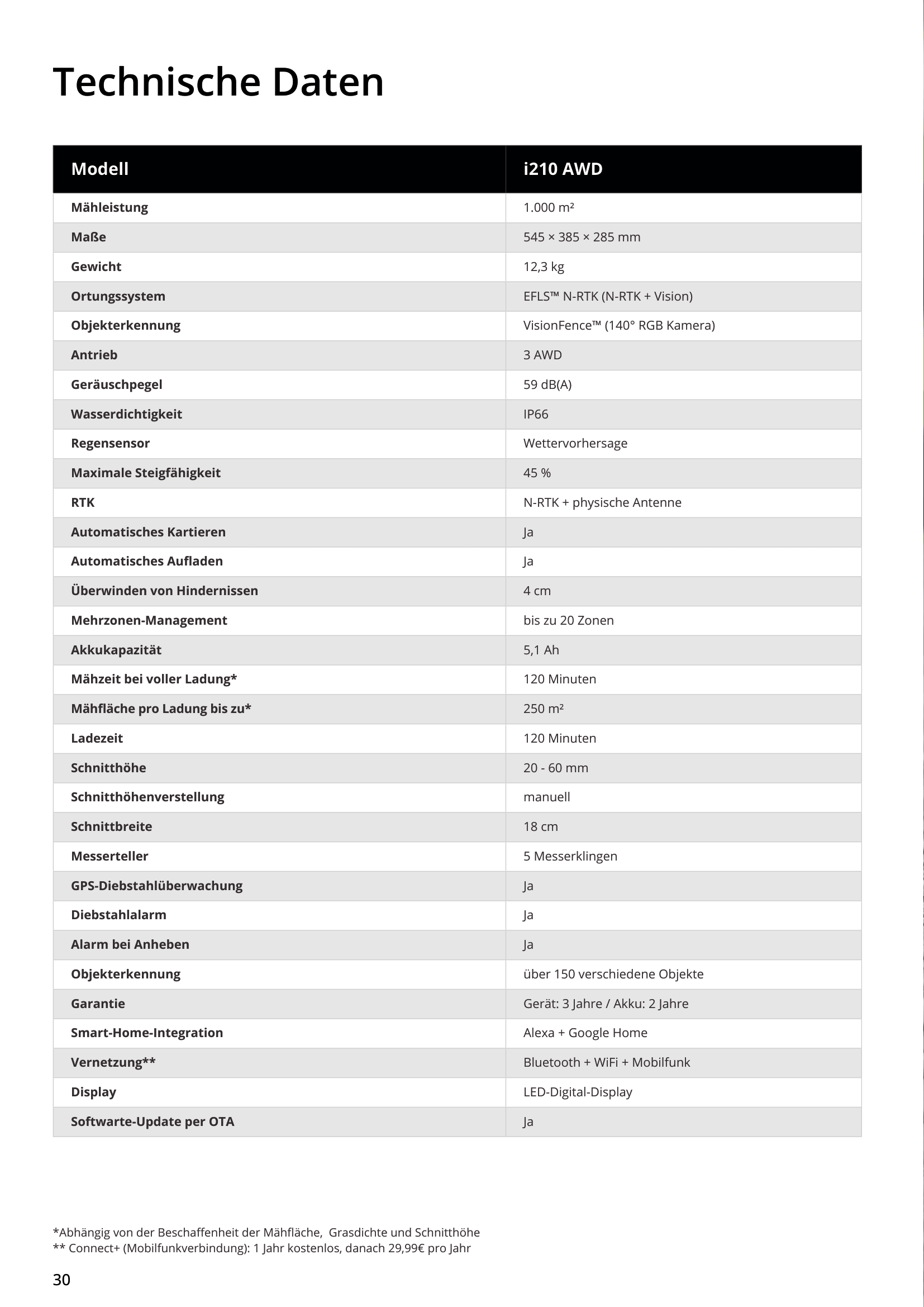 Konzipiert für kleinere Gärten. Ausgestattet mit 140°-Weitwinkelkamera, KI-Algorithmus und VisionFence™.