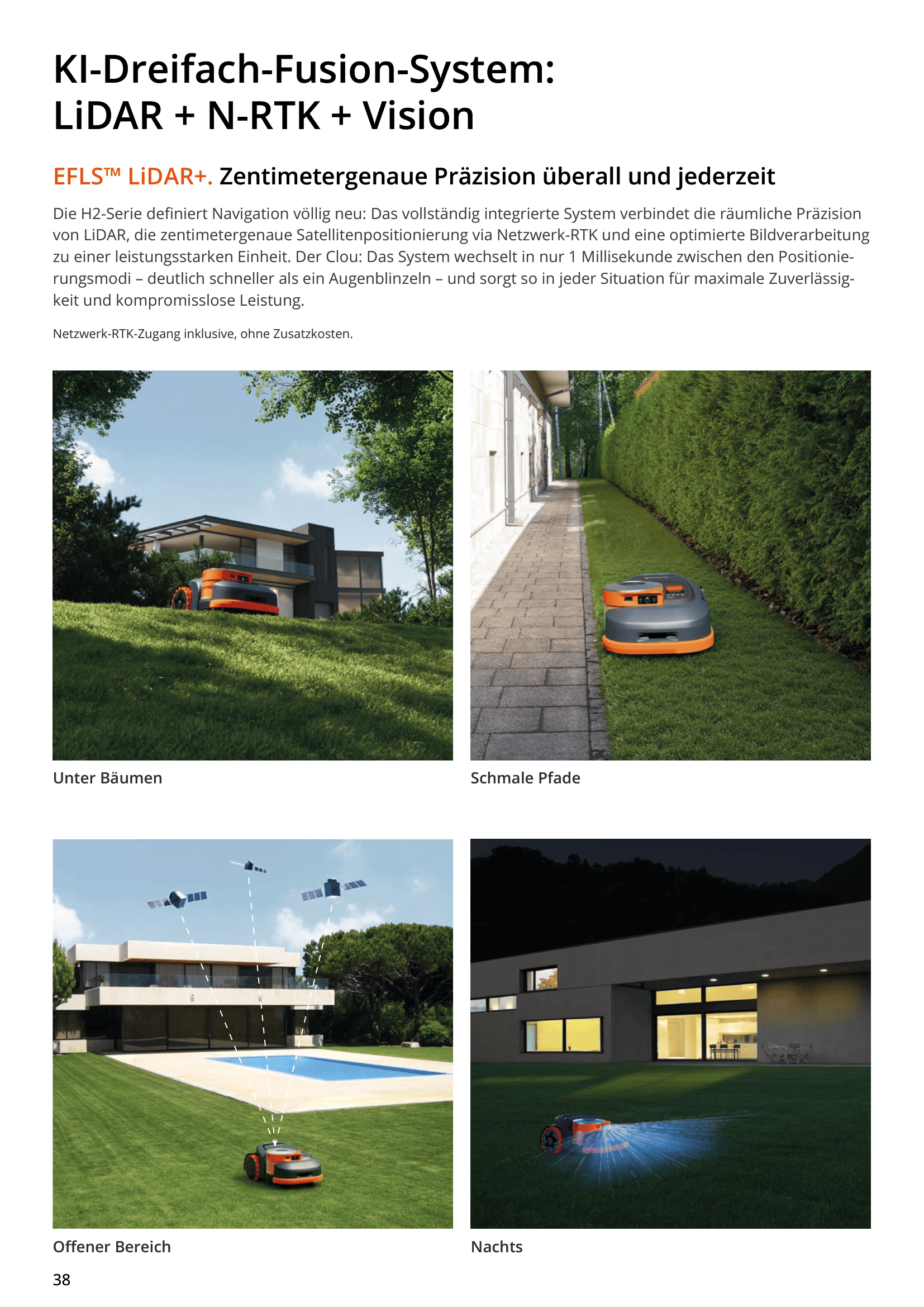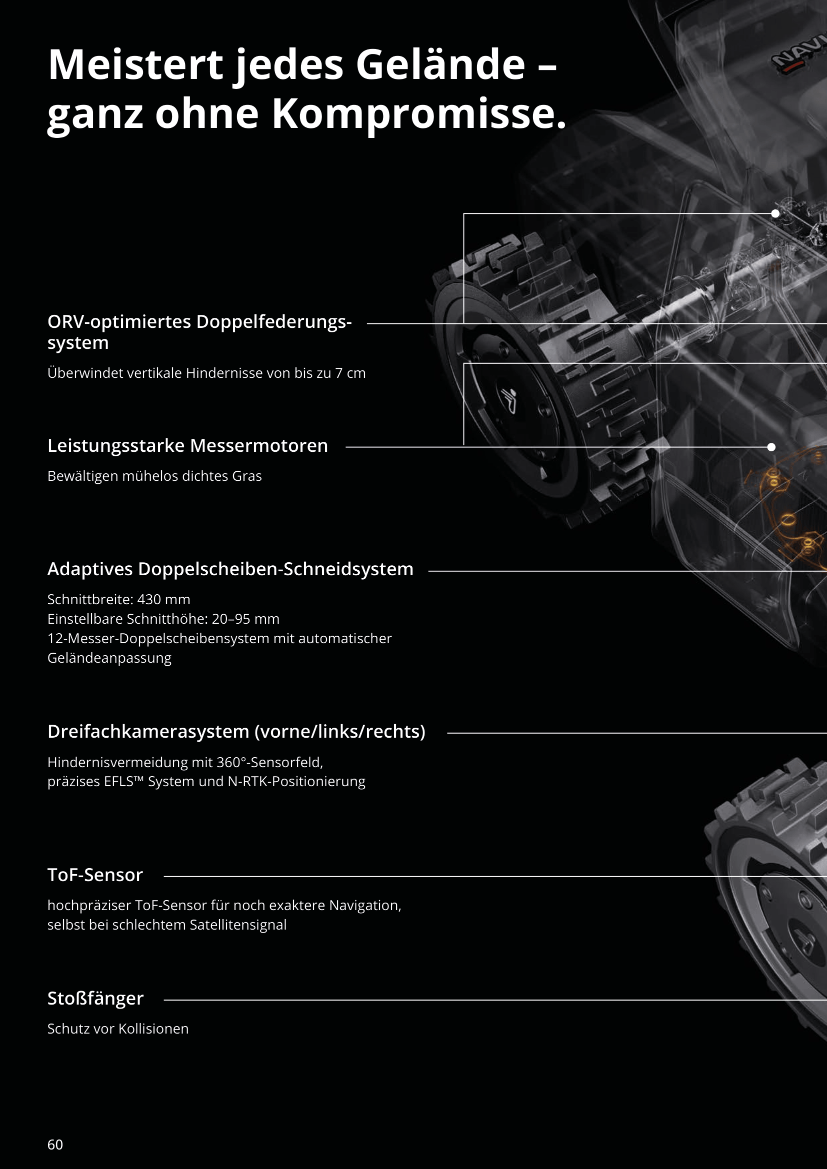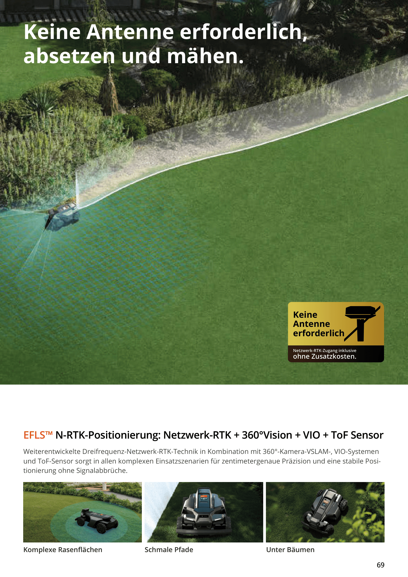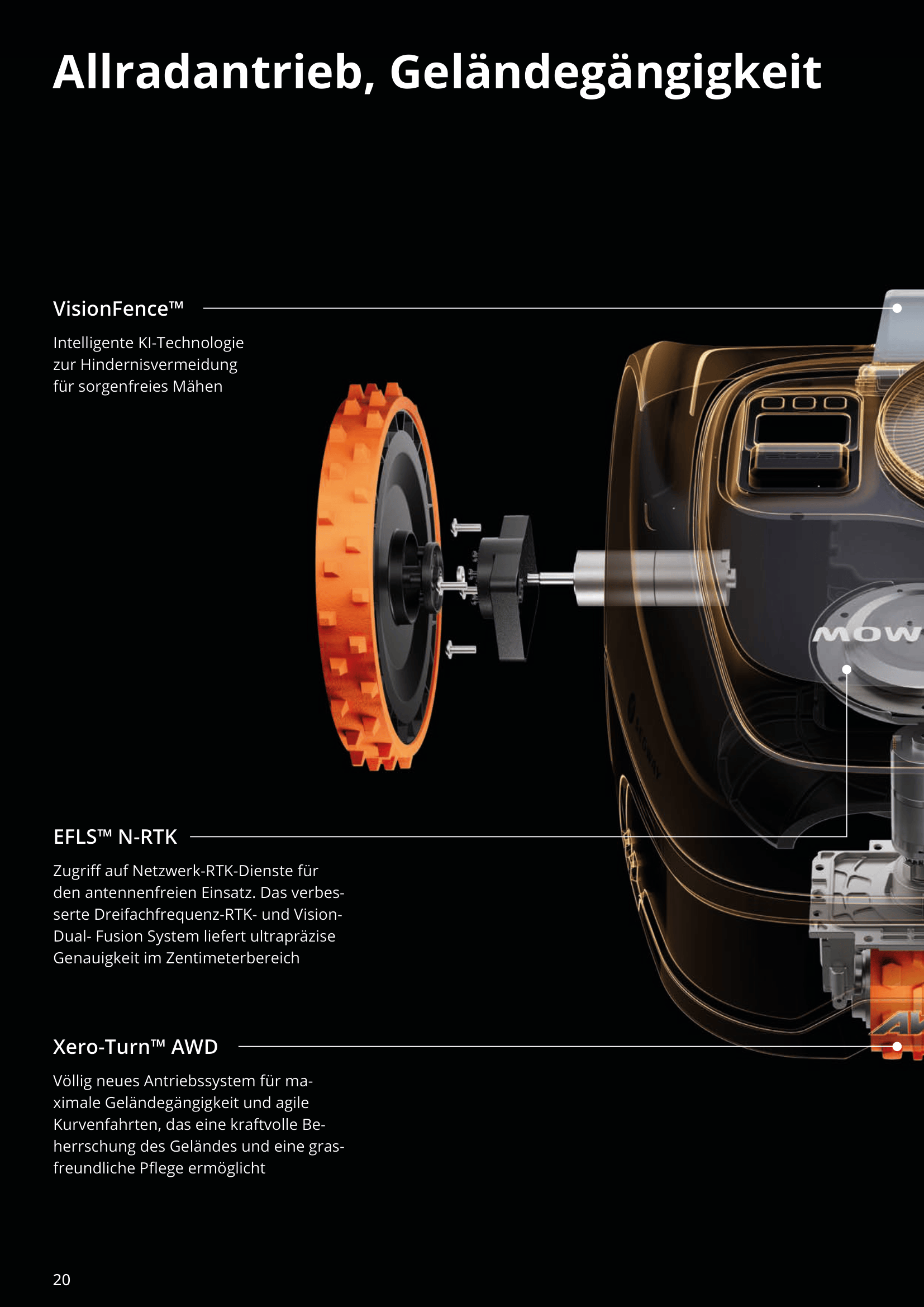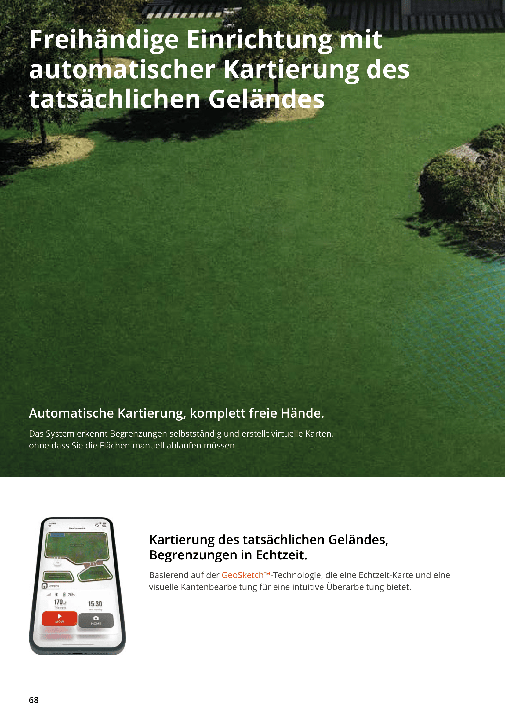 Entwickelt, um große Grünflächen mit unübertroffener Effizienz zu bewältigen; mit verbessertem, selbst entwickeltem VisionFence™ und EFLS™ 3.0.
