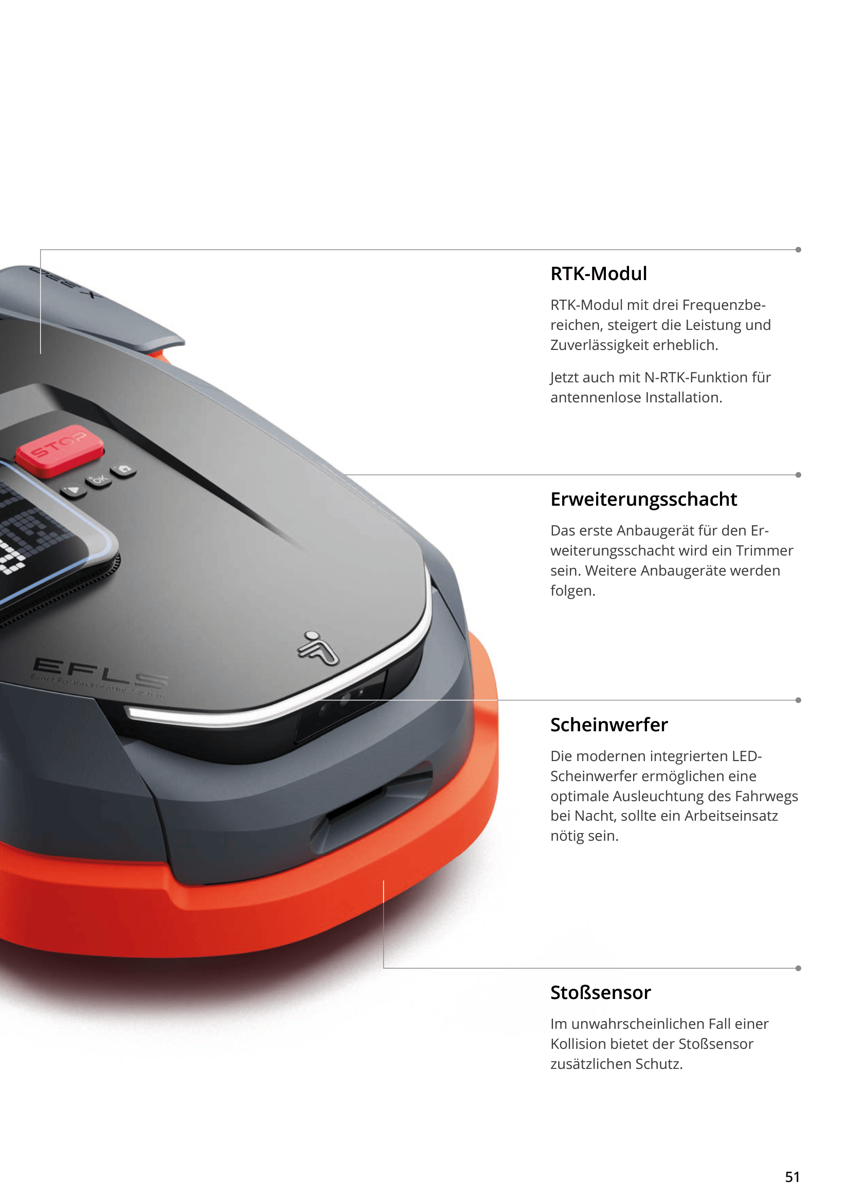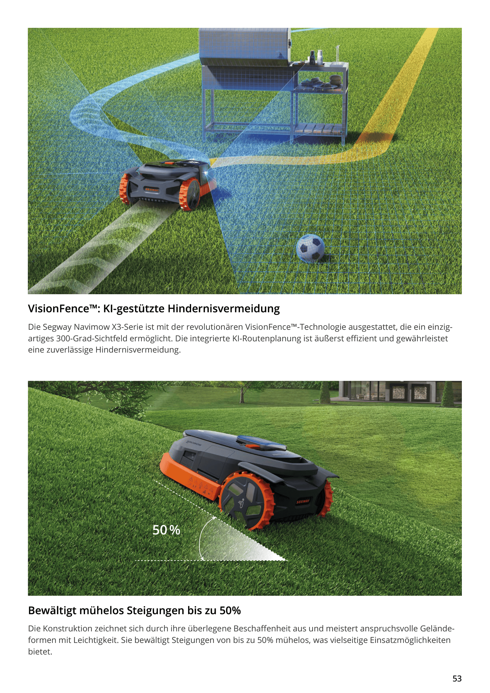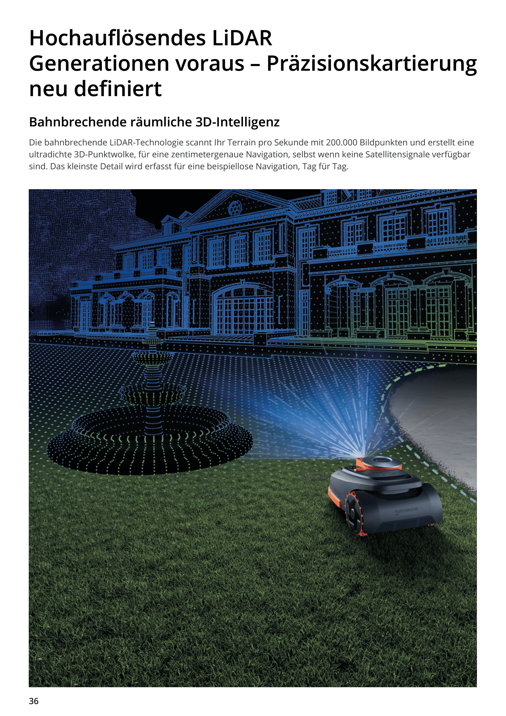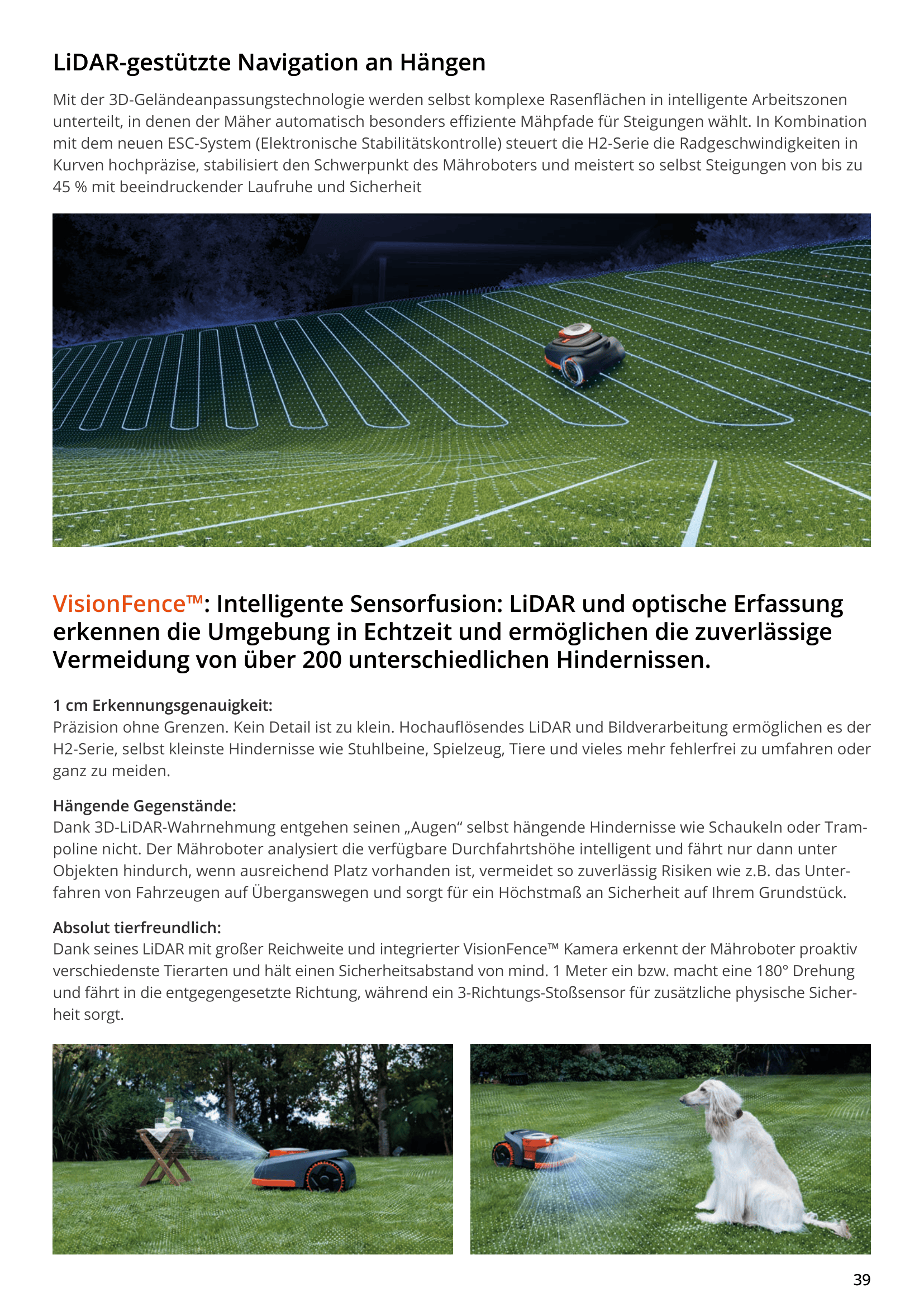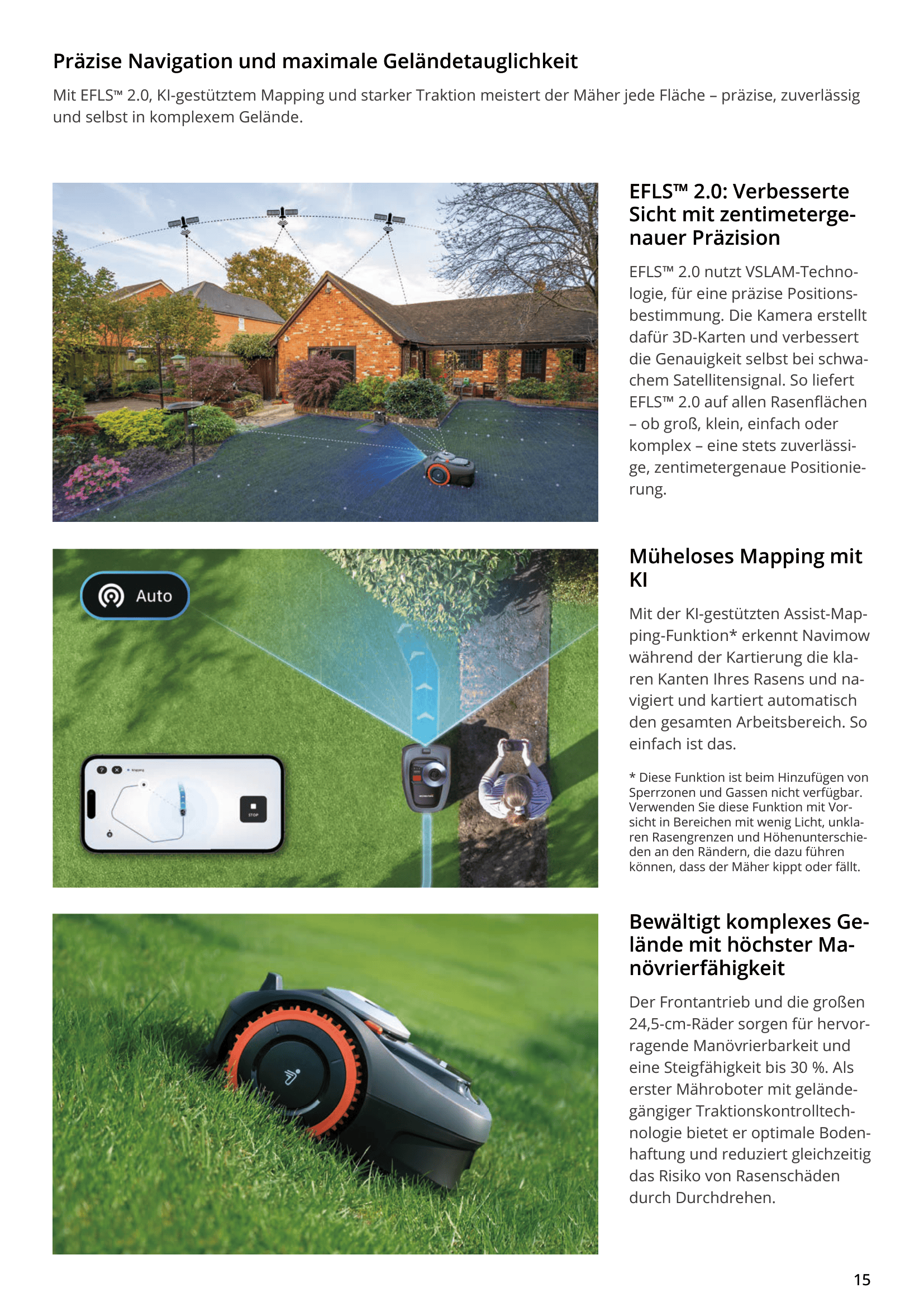 Entwickelt, um große Grünflächen mit unübertroffener Effizienz zu bewältigen; mit verbessertem, selbst entwickeltem VisionFence™ und EFLS™ 3.0.
