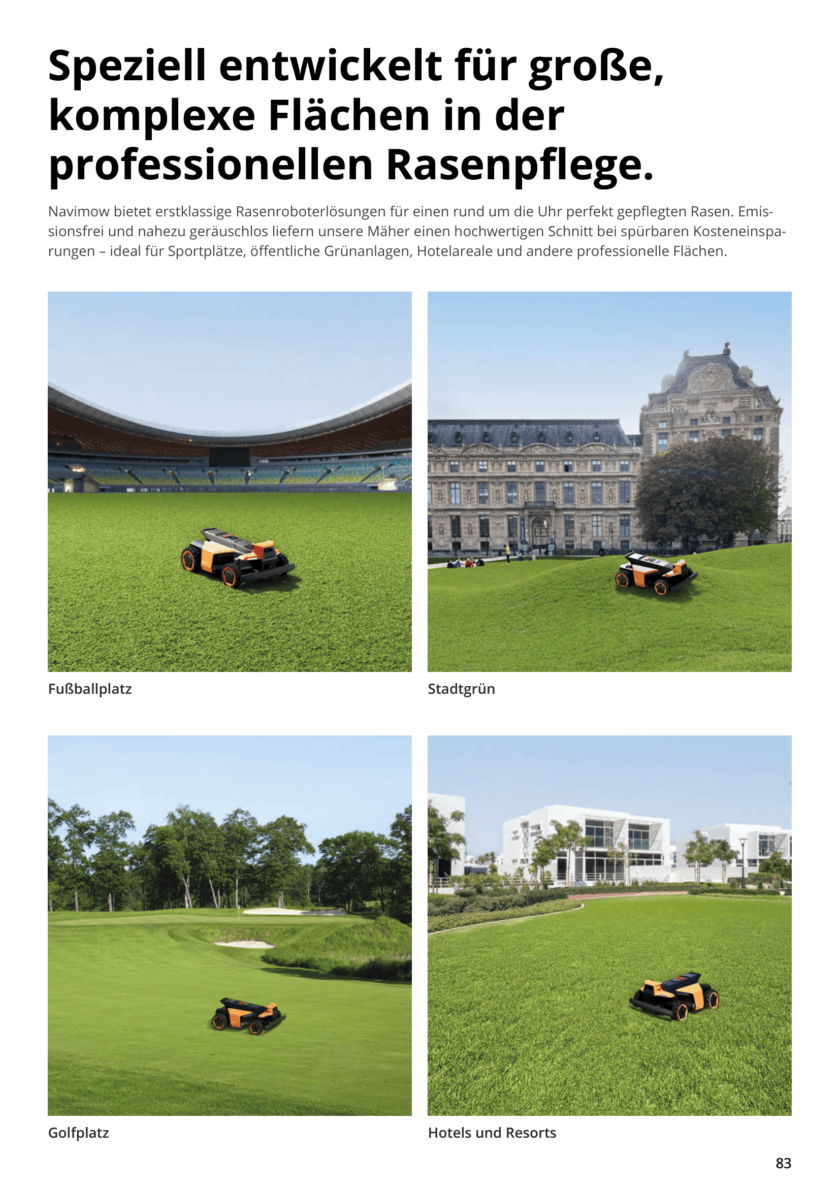 Entdecke die verschiedenen Modelle der Segway Navimow Mähroboter! Mit 6 verschiedenen Produktserien finden wir bestimmt das passende Modell für deinen Garten. Auch für kommerzielle Zwecke bieten wir effiziente, professionelle und umweltfreundliche Lösungen zur Rasenpflege – z.B. für Fußballplätze, Parks, Golfplätze, Hotels/Resorts und viele mehr.